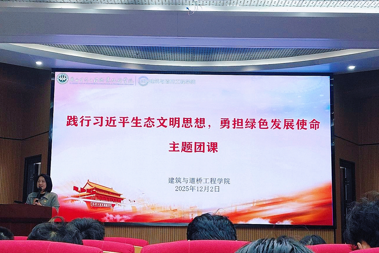 为深入学习贯彻习近平生态文明思想,引导广大团员青年树立绿色发展理念,主动肩负生态环境保护的青春责任,2025年12月2日下午,建筑与道桥工程学院在学校求是报告厅开展“践行习近平生态文明思想,勇担绿色发展使命”主题团课。全体团员青年齐聚一堂,系统领悟生态文明建设“十个坚持”的核心要义,凝聚起共建美丽中国的青春力量。